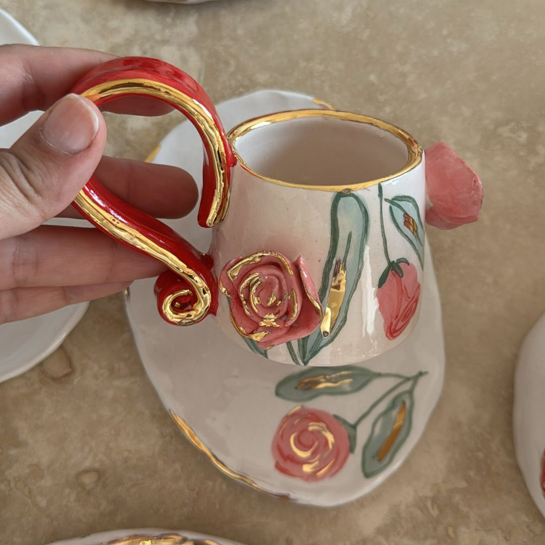 فنجان واحد ، تفاصيل كثيرة مصنوع يدويًا بعناية ليجمع بين الجمال والاستخدام مناسب للقهوة التركية والفرنسية والإسبريسو شوت ١٢٠ مل ، ويمكن أن يرافقك أيضًا في تقديم المكسرات أو الآيس كريم بأسلوب أنيق ودافئ